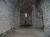 L'intérieur présente une nef aux parois rehaussées d'un cordon de pierre en saillie, qui communique avec l'abside par un superbe arc triomphal ogival à double voussure, surmonté des deux oculi déjà mentionnés.