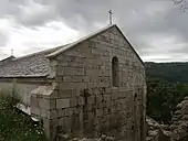 Ce chevet prend appui sur un mur pignon percé de deux oculi.