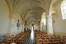 En 1823, une tempête fit tomber le clocher. Une restauration fut donc entreprise, pour être terminée vers 1897, avec l’installation des voûtes et piliers en plâtre du style Renaissance[2].