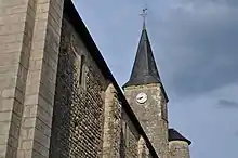 Un clocher a été construit au-dessus du croisillon sud du faux transept.
