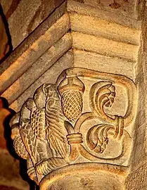 Le chapiteau sud de l'arc est décoré avec des feuillages.