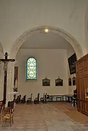 Les deux vitraux des absidioles sont très simples, sans décoration.