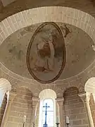 Le cul-de-four de l'abside orientale est décoré d'une mandorle, où une peinture murale représente le Christ Pantocrator entouré des quatre anthropomorphes. Il est soutenu par des arcades supportées par des chapiteaux sculptés.