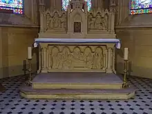 Dans la chapelle de la Vierge se trouve un autel offert en 1872 par la famille Berrubé, également donatrice de nombreux vitraux (cf. infra). Cet autel de pierre est orné de bas-reliefs représentant la Dormition de la Vierge et, sur les côtés, la Visitation et la Nativité. L'autel est surmonté d'une statue de la Vierge entourée de l'archange Gabriel et de sa cousine Sainte Élisabeth.
