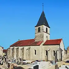 Construite en moellon, pierre de taille, et revêtement l’église est de plan allongé à nef unique voutée d’ogive avec chevet à fond plat percé d'une fenêtre unique. Les toits à longs pans sont couverts de tuiles plates et d’ardoise. Le clocher massif à flèche carrée est situé au dessus du chœur avec un escalier à vis hors-œuvre sur son côté nord[1]. Le portail d'entrée situé en pignon ouest est précédé d'un porche dorique ajouté à la fin du XVIIIe siècle.