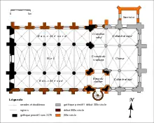 | Autres campagnes de travaux | fin XVIe / début XVIIe siècle (reconstruction des bas-côtés et voûtement d'ogives de la nef et des bas-côtés) | |||