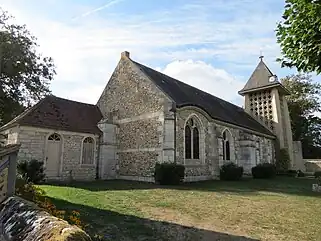 L'église est faite de silex avec une ceinture en pierre de Vernon ; la construction est assez pauvre ce qui témoigne de l'indigence de cette paroisse. D'après Auguste Le Prévost, la première mention du qualificatif orgueilleux, comme de celle de l'église, remonte à 1450[3].