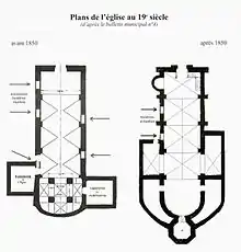 - 1873 - 1875 : Deuxième campagne de travaux : construction de contreforts pour renforcer la voûte de la nef.