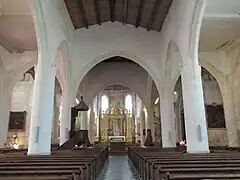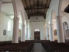L'édifice de 1628 était lui aussi voûté d'ogives et suivait l'orientation de l'église médiévale. Cependant il fut fortement ébranlé par l'effondrement du clocher en 1774, et il ne semble en rester que les colonnes écrêtées et les parties hautes des bas-côtés et de la nef. L'orientation du chœur fut modifiée après l'effondrement de 1774, et un nouveau clocher fut construit à l'emplacement du sanctuaire médiéval. L'église fut alors charpentée.