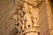 Il y a douze chapiteaux sculptés, dont sept sont historiés : quatre dans l'ébrasement occidental et trois dans l'ébrasement oriental. Ils sont alignés sous une frise alternant tailloirs et impostes, sur laquelle se déroulent des rinceaux à flabelles, palmettes et crossettes.