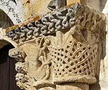 Le tailloir de cette double corbeille est couvert par des entrelacs sans fin. La deuxième corbeille est couverte par une magnifique dentelle de pierre.