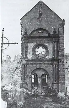 Les premières traces remontent à 1084 mais l'édifice actuel fut construit au XVe et possédait alors deux travées de plus ; remaniée au XVIIe, avec un clocher restauré au XIXe. Elle fut incendiée le et ne restait debout que le portail ouest. Reconstruite entre 1920 et 1931, elle fut inaugurée le ; elle avait été classée en 1862[1].