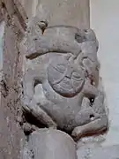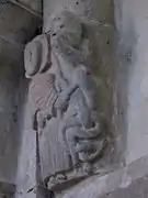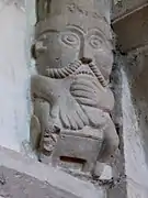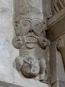 Dans le chœur, les chapiteaux sont historiés par des singes, des animaux s'affrontant. Les huit grands culots représentent une tête énorme collée à une paire de jambes, deux têtes moustachues, des embryons de bras tirant une bouche, un personnage portant deux animaux, un buste, un saint personnage devant un homme enroulé par un serpent[8],[9],[1].