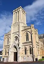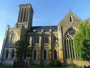 Construite dans la deuxième moitié du XIXe siècle, l'église est de style néo-gothique et est dotée de nombreux vitraux. Les stalles du chœur comportent de remarquables miséricordes ornées de bouquets de fruits, dragons, visages d'enfants avec ailes de chauves-souris et visages d'homme vert.