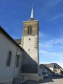 La base du clocher date de 1625, mais il a bénéficié de travaux de rehaussement entre 1827 et 1844, lui faisant atteindre sa hauteur actuelle de 28 m[1]. Il abrite 4 cloches[1],[8].