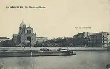 Vue de l'église derrière le canal de la Luisenstadt | |