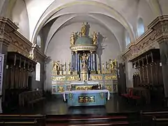 : arrêté[9],[10],[11] de classement au patrimoine mobilier des monuments historiques de l'autel principal et de son retable, et des deux autels latéraux avec leurs retables du Sacré-Cœur et de Notre-Dame des Gloires.