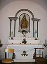 L'autel est en bois sculpté et peint en blanc. Sur la façade est représenté le monogramme marial composé des lettres A et M entrelacées, initiales de l’Ave Maria. Dessus sont placées des statuettes de l'Enfant Jésus de Prague et de Notre-Dame de Lourdes. Au centre est représentée une ancre dorée, symbole d'espérance.