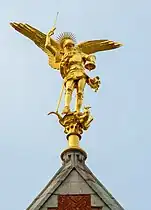 La statue de l'archange située au sommet du clocher est une réplique de celle du clocher de l'abbaye du Mont-Saint-Michel, exécutée par le même sculpteur Emmanuel Frémiet[3]. Le 4 février 1990, la statue, déstabilisée à la suite d'une tempête[2], est descendue pour que son support soit renforcé ; elle n'est réinstallée que dix-sept ans plus tard, le 18 novembre 2007.