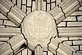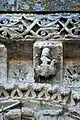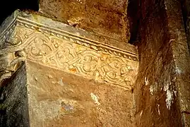 - Au dessus la porte-feint sud, la corniche est décorée avec des rinceaux et feuillage simples.