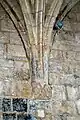 - La porte feinte sud : La voussure, en arc brisé, est décorée de fleurs stylisées. La sculpture centrale, qui est abimée, est supposée représenter la Présentation de Jésus au Temple.