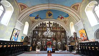 À l'intérieur, l'iconostase, de style classique, a été réalisée en 1814 par le sculpteur sur bois Marko Vujatović. L'orfèvre Dimitrije Lazarević a participé à sa réalisation ; les icônes sont dues au peintre Konstantin Lekić et datent de 1822[1].