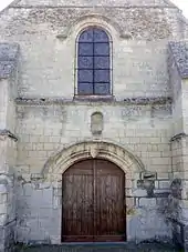 La façade occidentale est subdivisée en trois segments par les deux contreforts occidentaux de la nef. La partie centrale est scandée par un bandeau biseauté à l'appui de la fenêtre haute, et par un bandeau analogue, mais plus mince, à la naissance du pignon. Le portail, assez large, est en anse de panier. L'archivolte et les piédroits sont moulurés de deux baguettes, sauf sur les quatre premières assises. Un écusson effacé occupe la clé d'arc. Ces éléments évoquent vaguement le style flamboyant tardif, quand les profils perdent leur acuité, mais peuvent bien dater de la réfection en 1762. L'archivolte est surmontée d'un bandeau mouluré en forme de sourcil, qui se poursuit sur une courte section au niveau des impostes. Un bandeau semblable décore la fenêtre haute, qui est du reste entourée de moulures prismatiques. Elle a donc été refaite à la période flamboyante, tout en conservant son arc en plein cintre de la fin du XIIe siècle. Ce n'est que bien après la consécration en 1522 que l'arc en plein cintre revient à la mode, à la Renaissance, vers la fin des années 1540. Au-dessus du bandeau, le mur est appareillé en petits moellons ; tout le reste est en pierre de taille. Les contreforts n'atteignent pas le pignon. Ils s'amortissent par un glacis formant larmier, et se retraitent par un fruit au niveau des impostes du portail. Ces éléments correspondent bien à la fin du XIIe siècle. En revanche, le larmier présent sur les trois faces, au niveau du sommet du portail, est plus propre au style flamboyant. Reste à mentionner une petite niche en plein cintre au-dessus du portail, aujourd'hui vide. Pour venir aux bas-côtés de la nef, ils n'appellent que peu de remarques. Les contreforts, assez peu saillants, se retraitent une fois par un fruit et s'achèvent par un glacis formant larmier, et devraient subsister d'origine. Les contreforts à l'intersection de la première et de la seconde travée ont été supprimés, sans doute en raison de leur mauvais état, lors de la démolition des voûtes vétustes, après l'arrivée de l'abbé Deligny. Les fenêtres ne sont pas décorées. La partie haute des murs est en moellons, et le couronnement est formée par une corniche moderne.