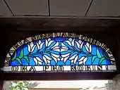 Le vitrail occidental du bas-côté sud concerne la petite baie au-dessus du portail, et a été réalisé en 1856. Dédié à l'Immaculée Conception, il représente des fleurs de lys comme symboles de la pureté au centre, entourées d'une inscription en latin qui se traduit par « Ô Marie conçue sans péché, prie pour nous [qui avons recours à toi] ». Ce petit vitrail a été restauré en 2011[9].