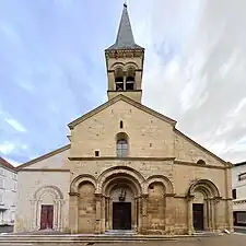 Si seule sa façade est inscrite, les sculptures du tympan central du porche sont seules d'époque romane ; celles du tympan droit ont été ajoutées lors de l'extension des années 1820[2].