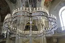 L'autel date de 1737. Le lustre offert par la Russie pèse 1 400 kg et a été réalisé dans la verrerie d'Harrachov en 1860[5].