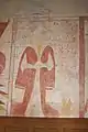 Ces peintures, probablement du XVIe siècle — le style des costumes des personnages est révélateur —, ont certainement été dégradées pendant les guerres de religion avec le grattage des visages des personnages.