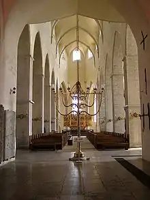 L'église, dédiée à saint Nicolas, patron des marins, est d'abord une église catholique construite au XIIIe siècle (vers 1230–1275) par la communauté germano-balte et sa guilde de marchands venus de Westphalie. Avant que la ville ne soit entourée de murs, elle sert de lieu de refuge à la population. En 1515 on donne davantage de hauteur à la tour et on lui ajoute une flèche de clocher gothique.