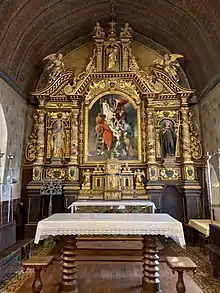L'édifice conserve un retable du XVIIe siècle de bois peint et de style baroque. Quatre colonnes torses sont présentes et une statue du Christ est présente dans un édicule situé à son sommet. La partie centrale abrite une copie d'après Descente de croix de Rubens conservée au musée royal des Beaux-Arts d'Anvers[2], et deux statues de saint Maur et saint Ouen[B 1].
