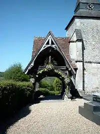 Vue générale de l'église et de son porche à deux parties | |
