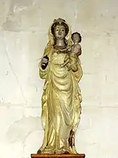 Parmi le mobilier de l'église, un seul élément est classé monument historique au titre objet[6]. Il s'agit d'une Vierge à l'Enfant en bois polychrome, qui mesure 99 cm de hauteur[7], et est datable de la fin du XVIe siècle grâce à sa coiffe, qui est caractéristique de l'époque de Marie de Médicis. D'une allure aristocratique, d'un regard hautain, elle se présente sur un plan frontal, et rompt avec l'attitude hanchée des Vierges des XIVe au XVIe siècle. Vêtue d'une fine étoffe aux plis souples, la mère tient une grappe de raisin dans sa main droite, et porte l'Enfant Jésus sur sa main droite. Celui-ci a le torse nu, et porte une grappe de raisin plus petite dans sa main gauche[8]. L'œuvre est classée depuis juin 1977. Déplacée dans la chapelle Sainte-Rita, sur la même commune, pendant un certain temps, elle est revenue dans l'église paroissiale après sa restauration par Laurence Chicoineau[7],[8].