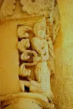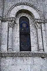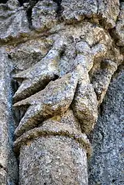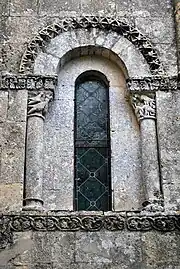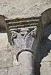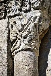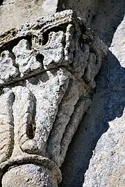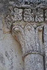 Le chapiteau occidental de la fenêtre est orné des feuillages entrelacés.
