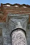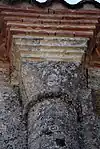 Les colonnettes n'étaient plus en place en 1855, il est possible que celles que l'on voit aujourd'hui soient des remplois, lors de la reconstruction de 1862, des colonnettes qui étaient au-dessus de la corniche.