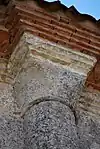 On trouve également neuf chapiteaux soutenant la corniche, avec décor végétal.