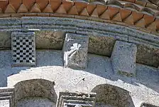 Sous la corniche, se trouvent 23 modillons sculptés dont aucun n'est figuré.