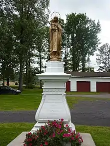 Faisant face à l'église de l'autre côté de la rue, il y a une statue du Sacré-Cœur de Jésus-Christ[5]. Devant la façade de l'église, il y a une statue de Pierre Brillant, le « Père de la Vallée ». Celle-ci comprend trois plaques : une pour les missionnaires et les curés de la vallée, une pour les pionniers de la vallé et une en hommage à Pierre Brillant[6]. Dans la cour entre l'église et le presbytère, il y a une statue de Notre-Dame à l'Enfant-Jésus[7].