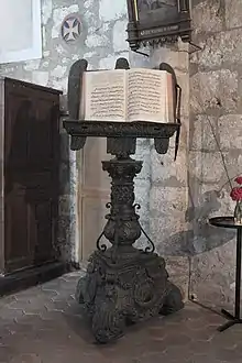 Elle est meublée de deux statues en bois encadrant le maître-autel : Une de Saint Jean-Baptiste et une Vierge avec l'Enfant. Dans le chœur, un lutrin en forme d'aigle date de 1688, de style Louis XIV[3].