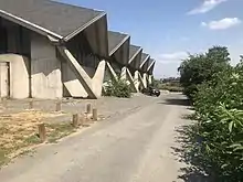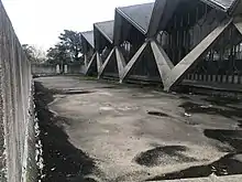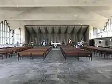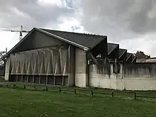 La paroi verticale du chœur de l'église est également composée de voiles triangles en béton préfabriqué.