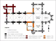 | Fin des travaux | fin XIIe / 1er quart XIIIe siècle (chœur, transept, 4e et 1re travées de la nef) |