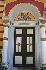 L'église est construite sur le plan d'une croix grecque, avec l'abside du chœur et des espaces marqués pour la proscomidie et le diakonikon à l'est, au nord et au sud. À l'ouest se trouve un court narthex avec deux niches dont l'une abrite un escalier conduisant à une galerie. À l'origine, l'édifice était surmonté d'un dôme[5]. Le portail occidental est protégé par un porche soutenu par deux colonnes[5]. L'édifice est constitué de briques enduites de mortier[5]. La décoration des façades est faite d'une alternance de bandes horizontales rouges et jaunes[5].