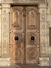 - Façade : groupe des quatre Évangélistes et de saint Pierre (années 1860)[4] :