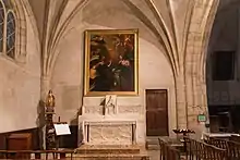Œuvre remarquable, l'ancien autel, en marbre rose du Languedoc, situé actuellement dans la chapelle Saint-François-Régis, doré à la feuille, date du début du XVIIIe siècle[11] (style Louis XIV). Il proviendrait de l'ancienne abbaye des Chambons pillée lors des guerres de Religion et détruite en 1790. Le tabernacle est classé monuments historiques. L'autel est surmonté par le tableau représentant le jésuite saint Régis (1597-1640), apôtre du Vivarais.