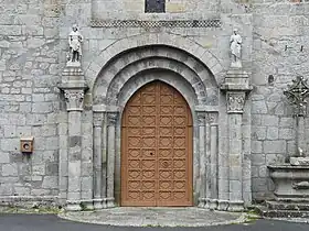 Un porche qui devançait le portail ouest a été démoli au XIXe siècle et remplacé par un pignon découvert, percé d’une baie qui abrite une petite cloche, tandis que deux statues en fonte peinte représentant saint Pierre et saint Roch ont été placées sur les colonnes de l’ancien porche. Une statue en fonte de la Vierge Marie a été installée sur l’acrotère du pignon, sans doute à la suite de la mission de 1870, si l'on en croit l'inscription[2].