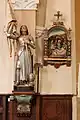 Les portails en bois sculptés dans la masse semblent curieux. La statue de Notre Dame a parcouru les paroisses de la région d'Aire et de Villeneuve de Marsan en en des processions mémorables. Elle a figuré à l'exposition d'Art sacré de Dax en 1955[1].