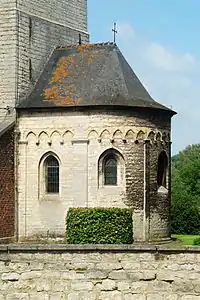 Le chevet roman a été remplacé au milieu du XIIIe siècle par un chevet de style de transition roman-gothique[3],[1].