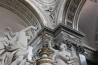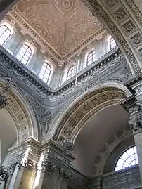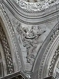 En 1780 le plafond peint du transept est remplacé par un décor de stucs de Jean-Baptiste Julia. Quatre bas-reliefs figurant des anges musiciens prennent place dans les écoinçons de la coupole, attribués à Julia ou à Laurent Montreuil[2].